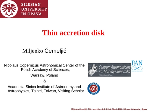 Booklets with Miki's lectures "Thin accretion disks":